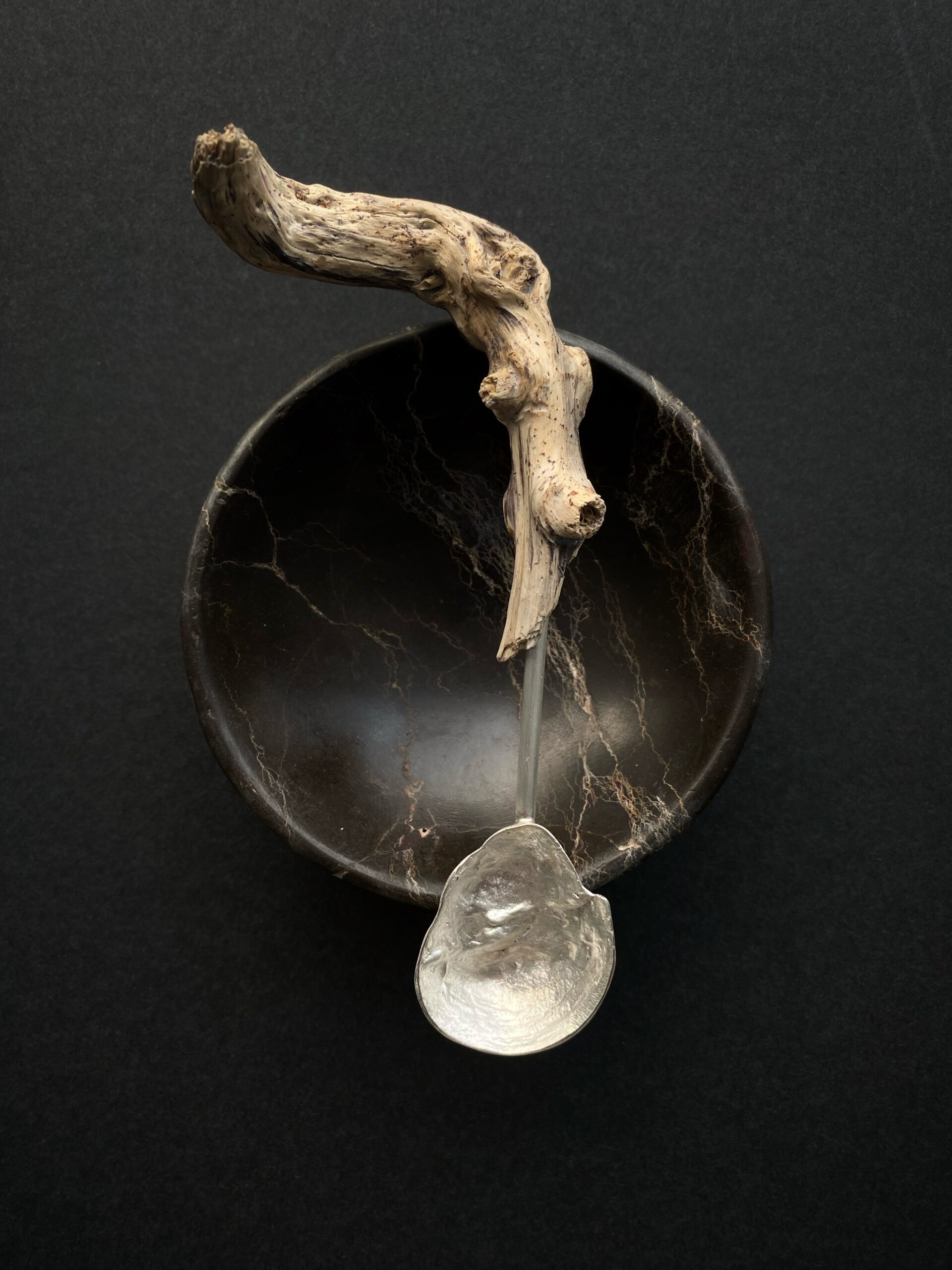 Skeer i træ, sten og sølv. De varierer en smule i størrelse og udtryk. Skeerne er fra Annette Dickow’s nyeste kollektion “Collecting memories – Fragments of nature”.