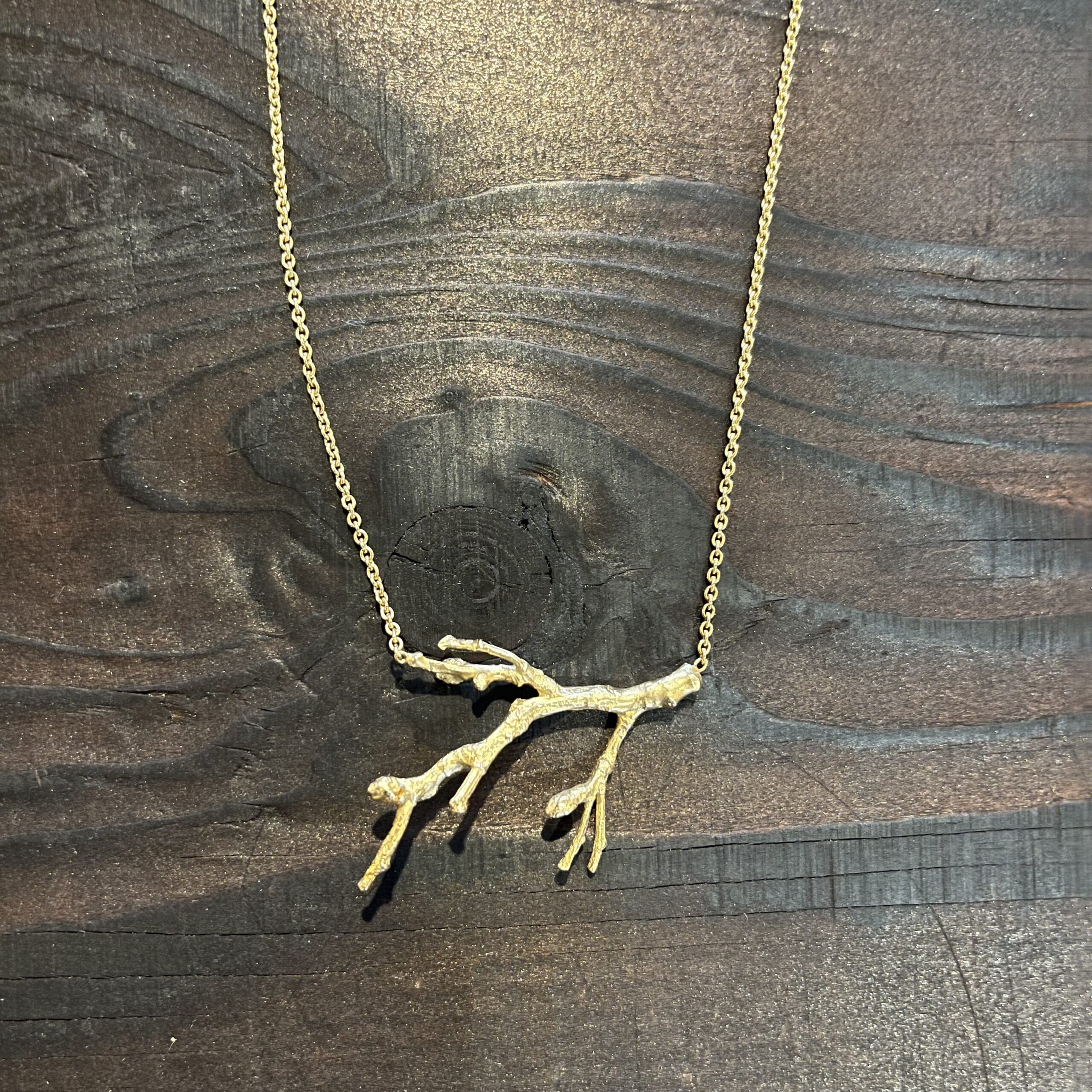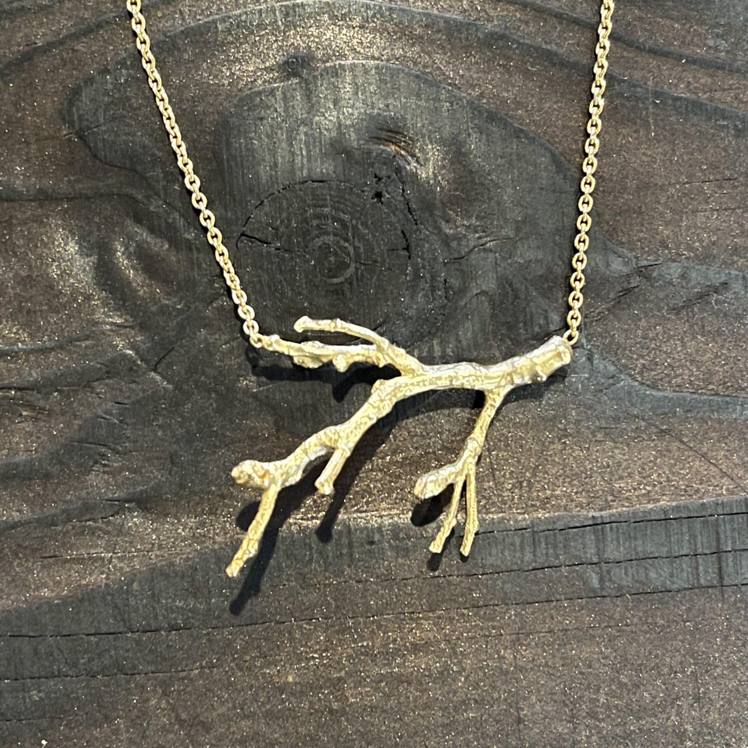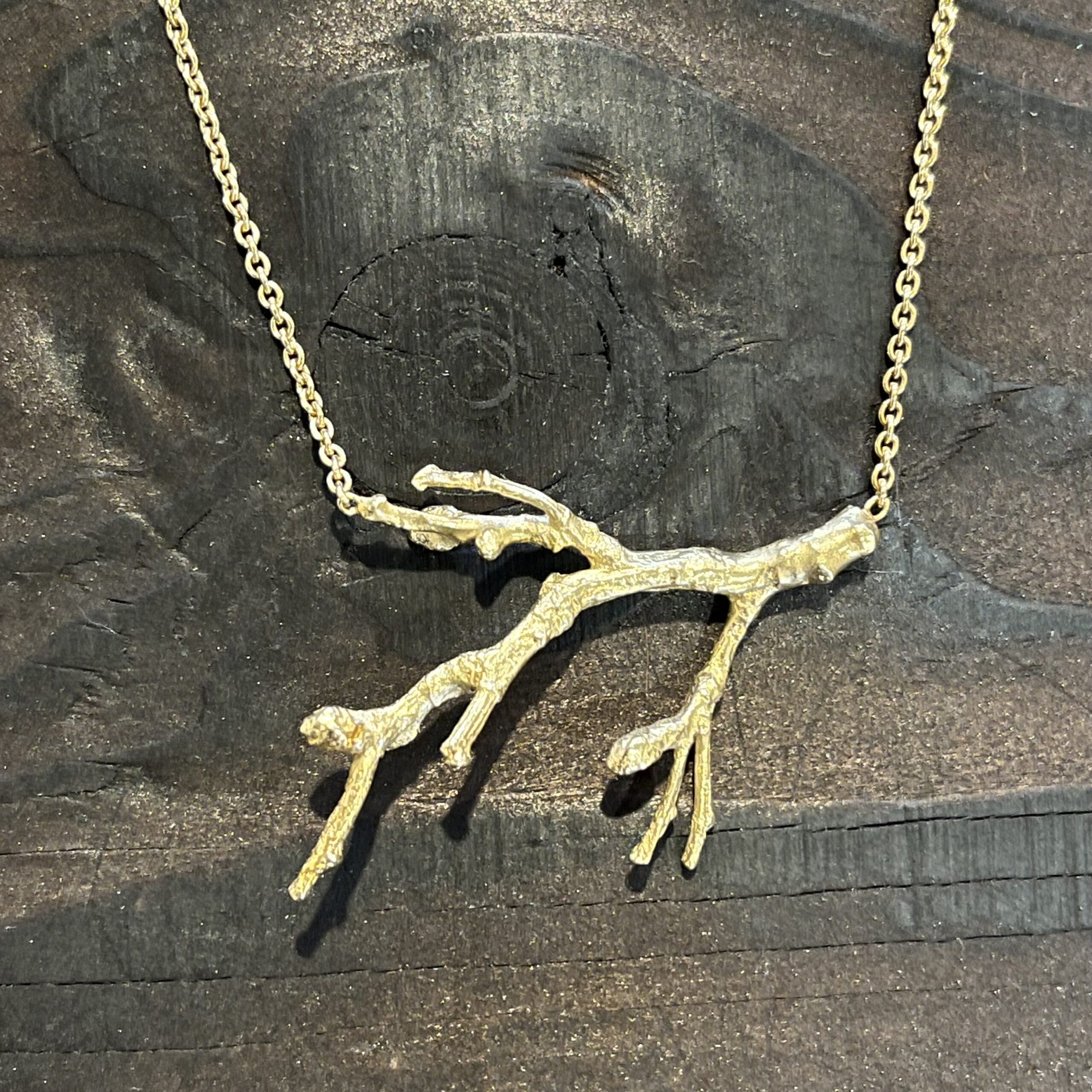Annette Dickow – From the forest halskæde i forgyldt og oxyderet sølv