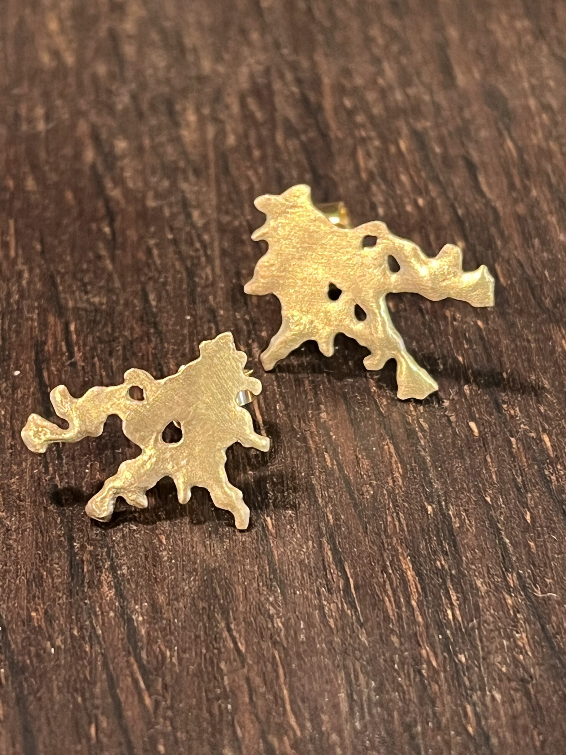 Novo Modo ørestikkere af Annette Dickow. Asymmetriske ørestikkere i 14 karat guld.