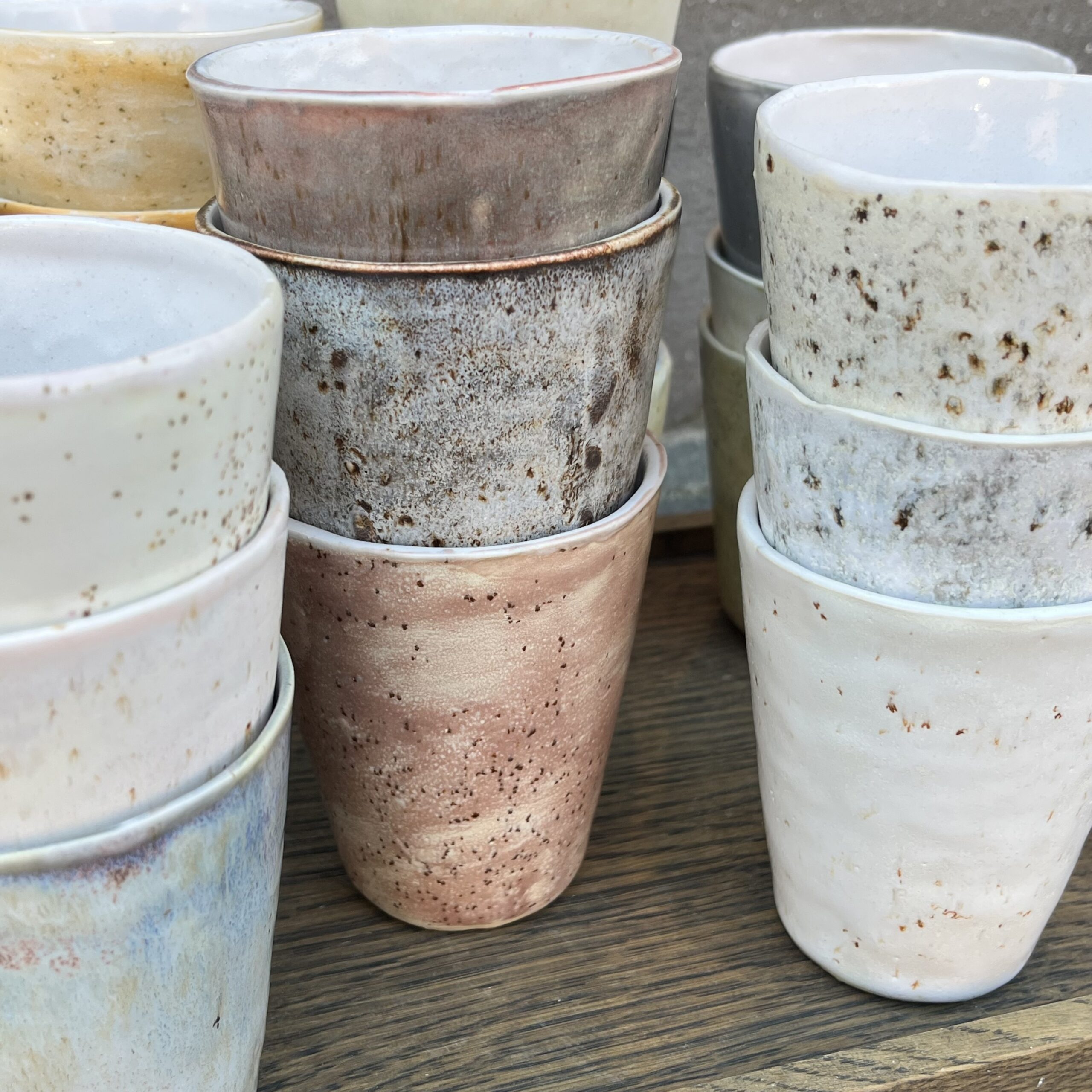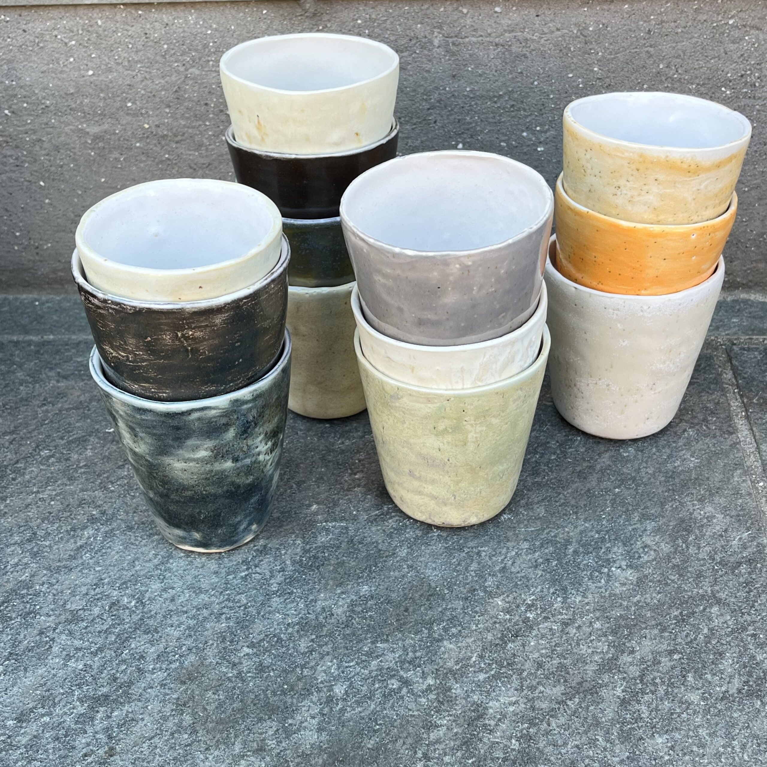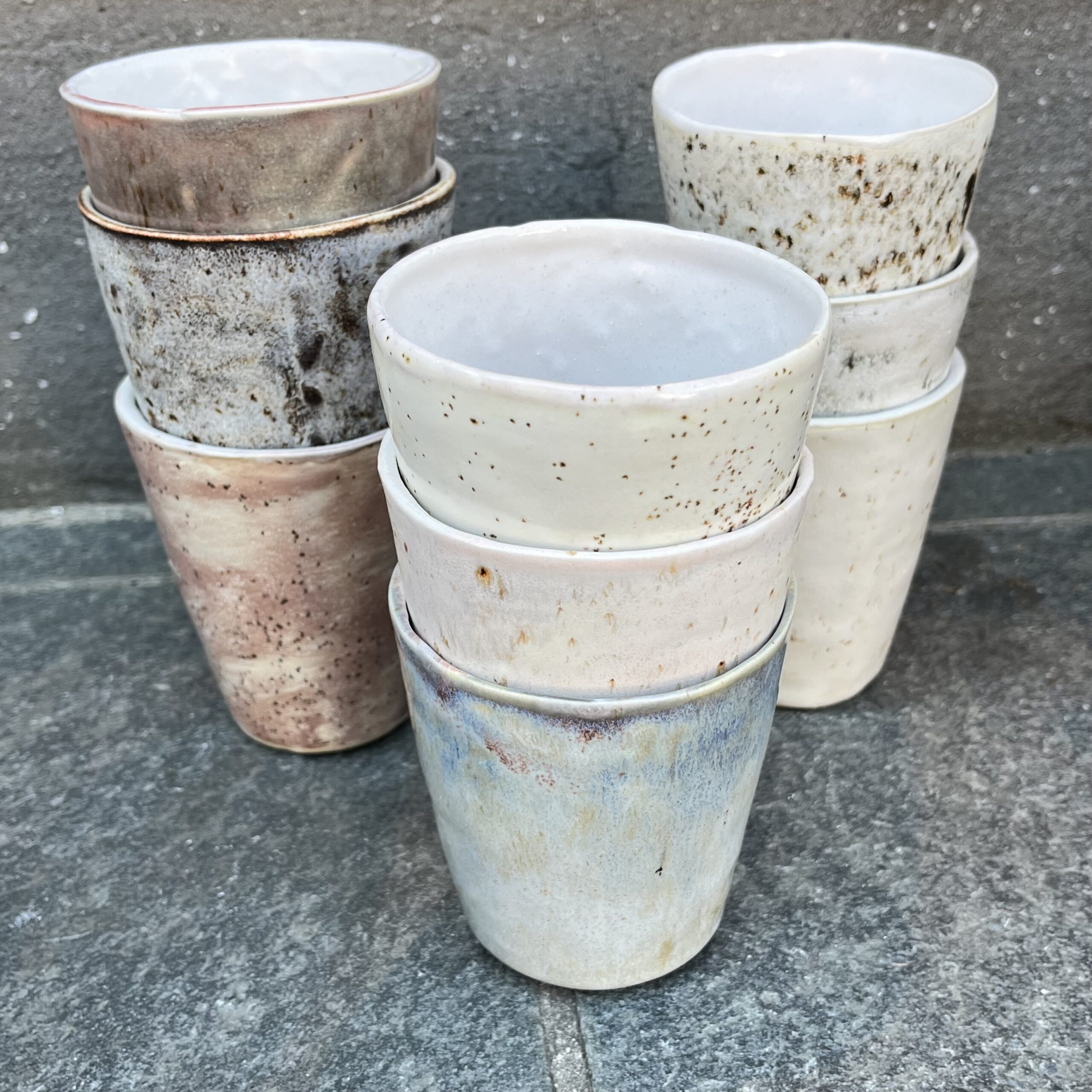 Bjarni Sigurdsson handleless cup with grooves and varied and strong glazes containing volcanic ash from the Eyjafjallajökull eruption.