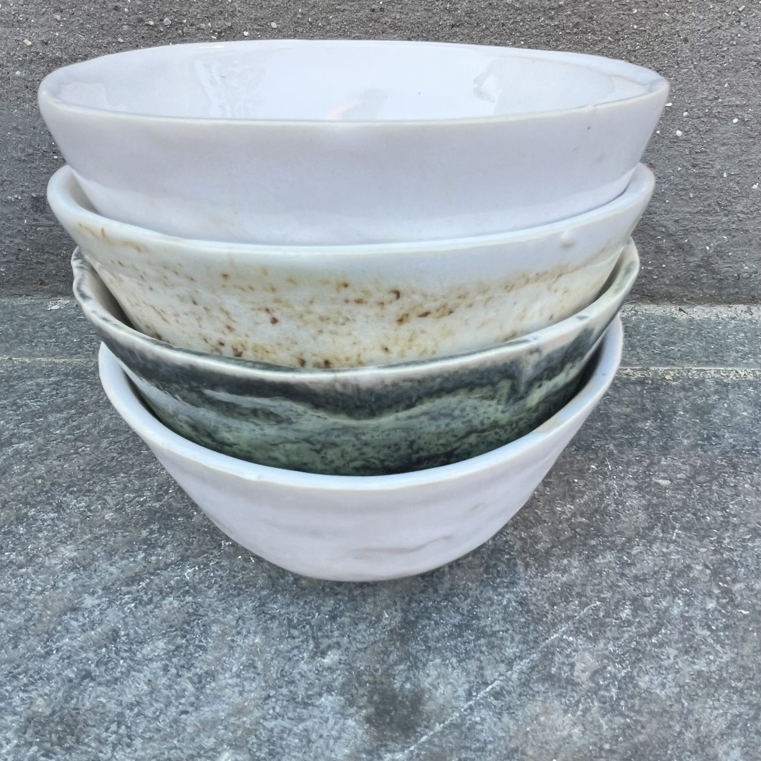 Rustic and colorful round stoneware bowls, with glaze both inside and out.