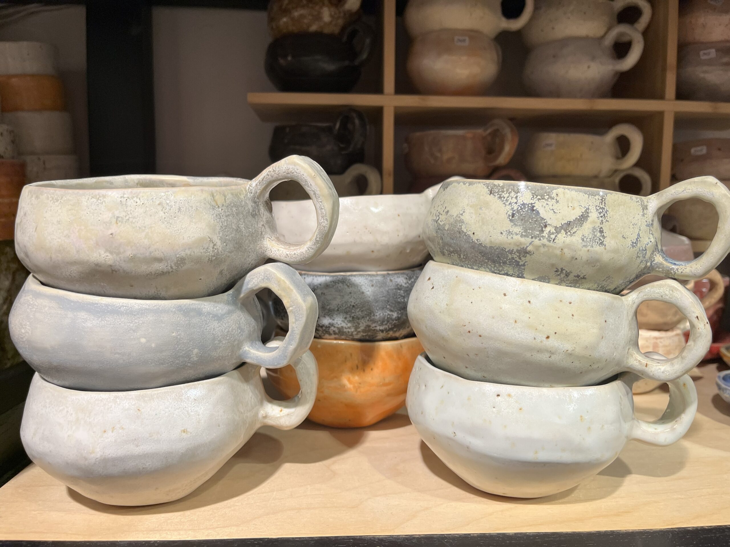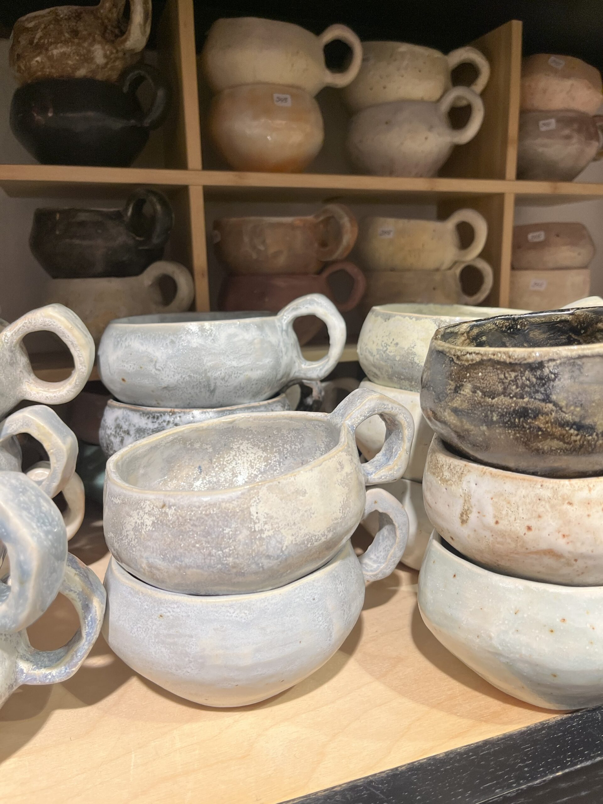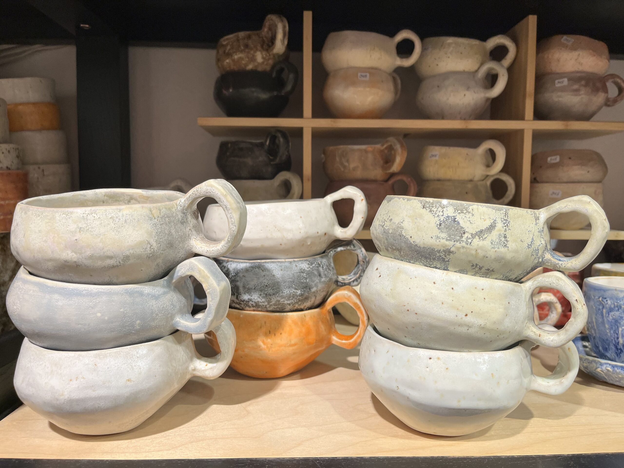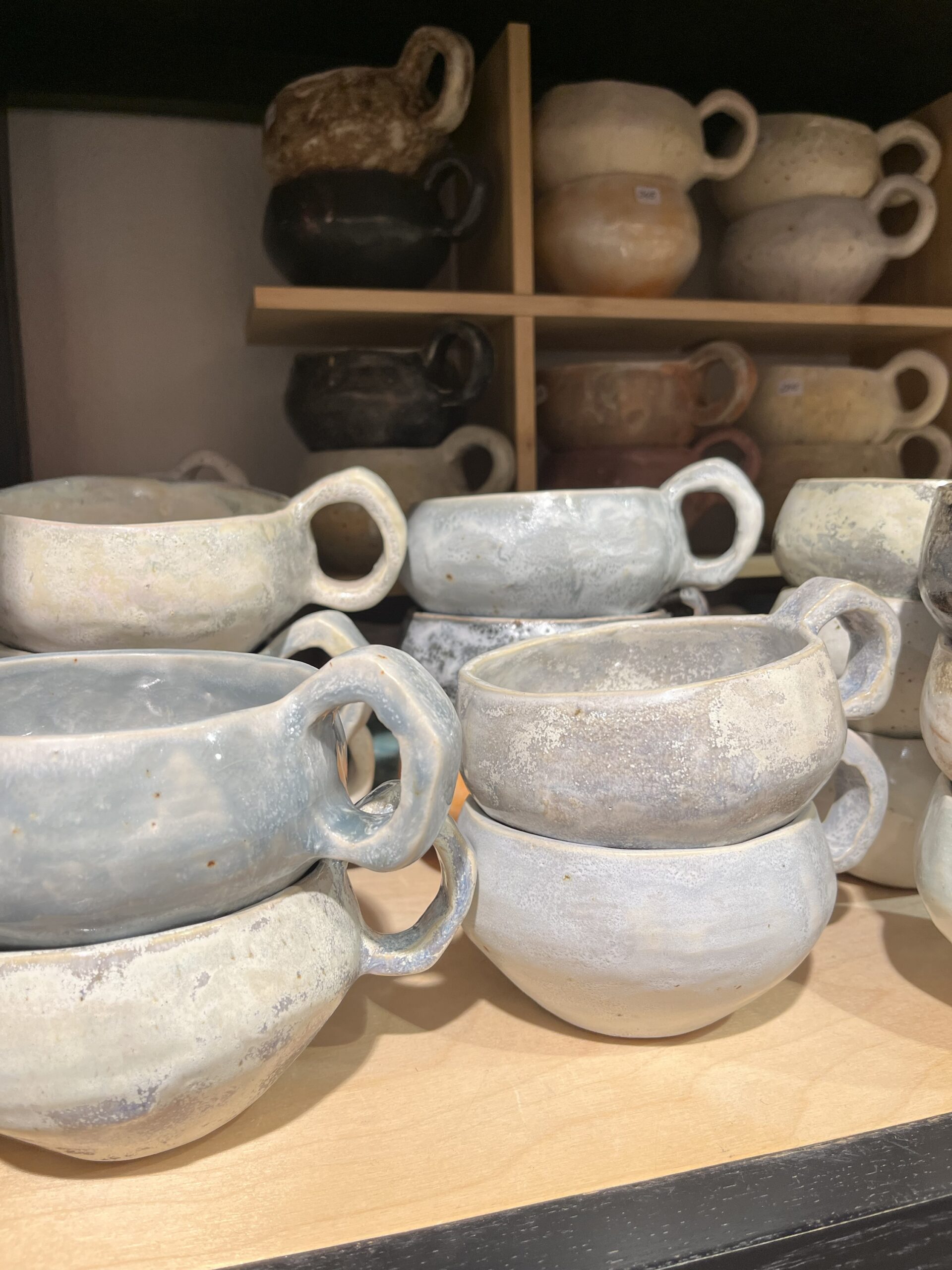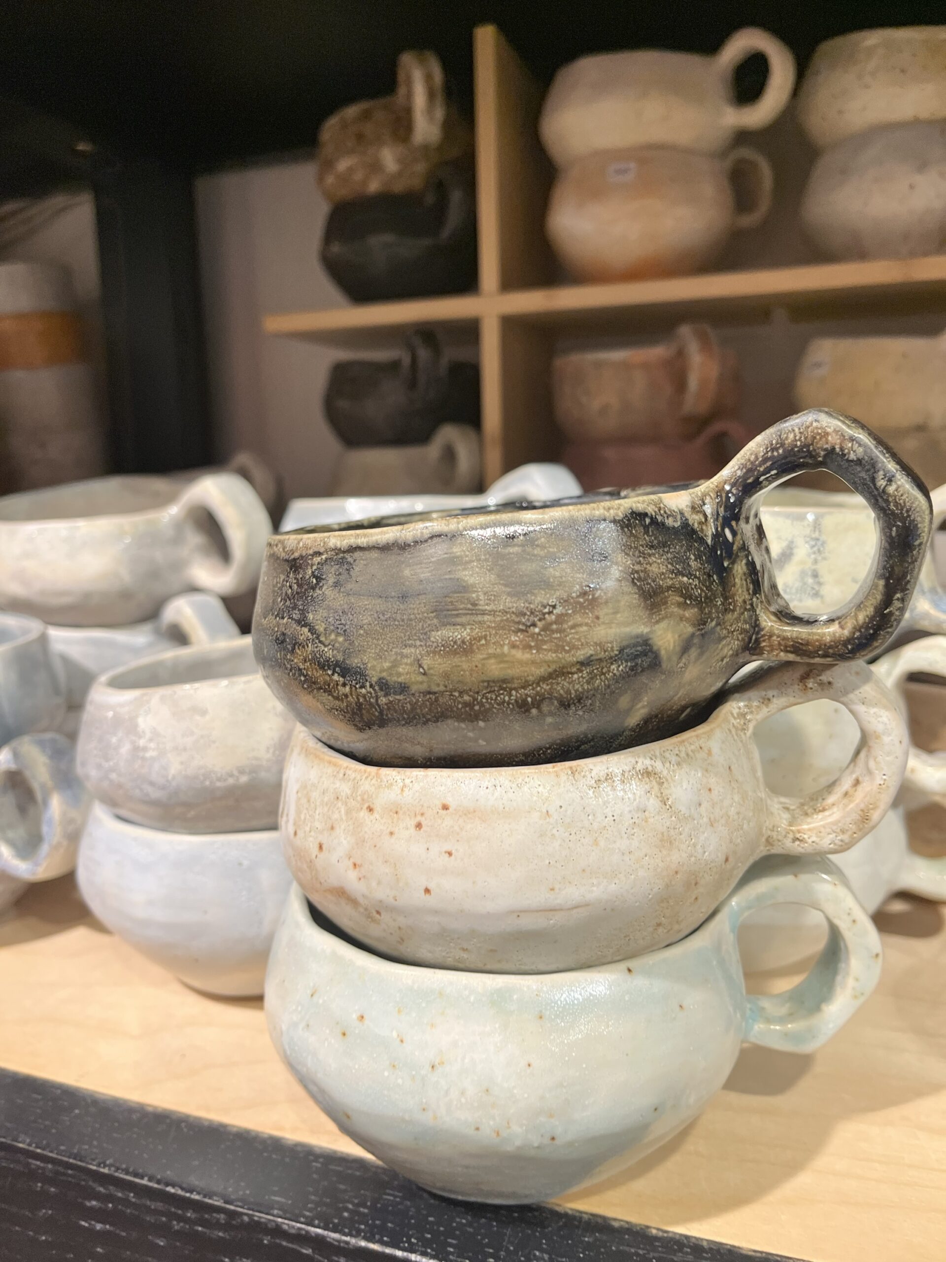 Mokka kopper lav med hank fra Bjarni Sigurdsson i de smukkeste glasure, nu også indeni.