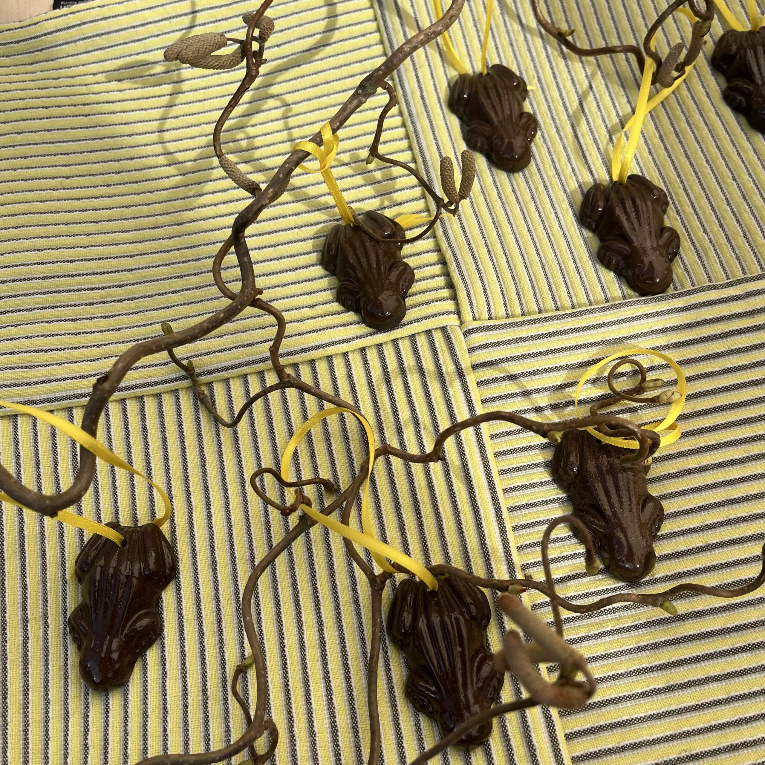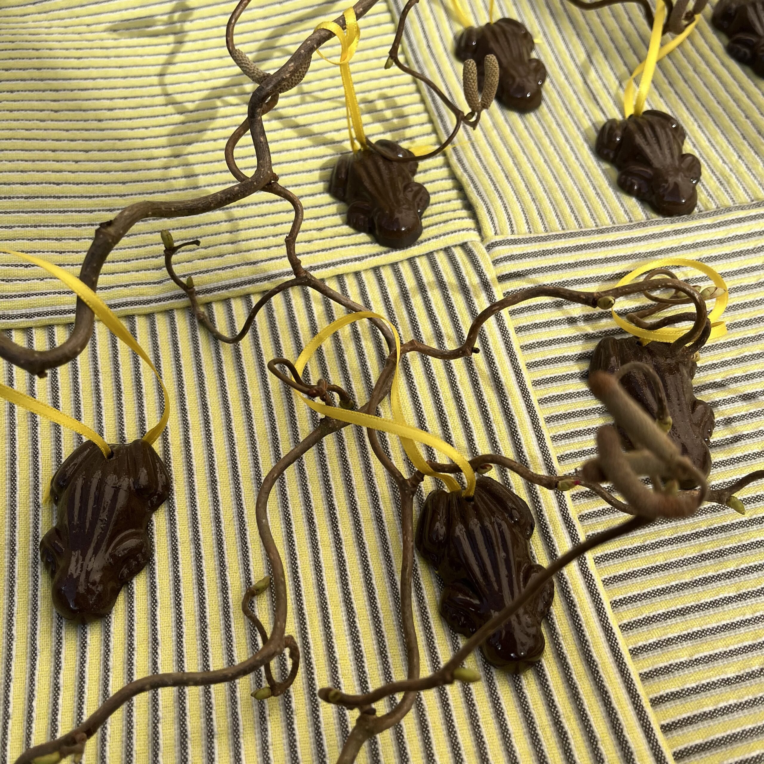 Christine Bendt chokoladefrøer med gul snor til ophæng