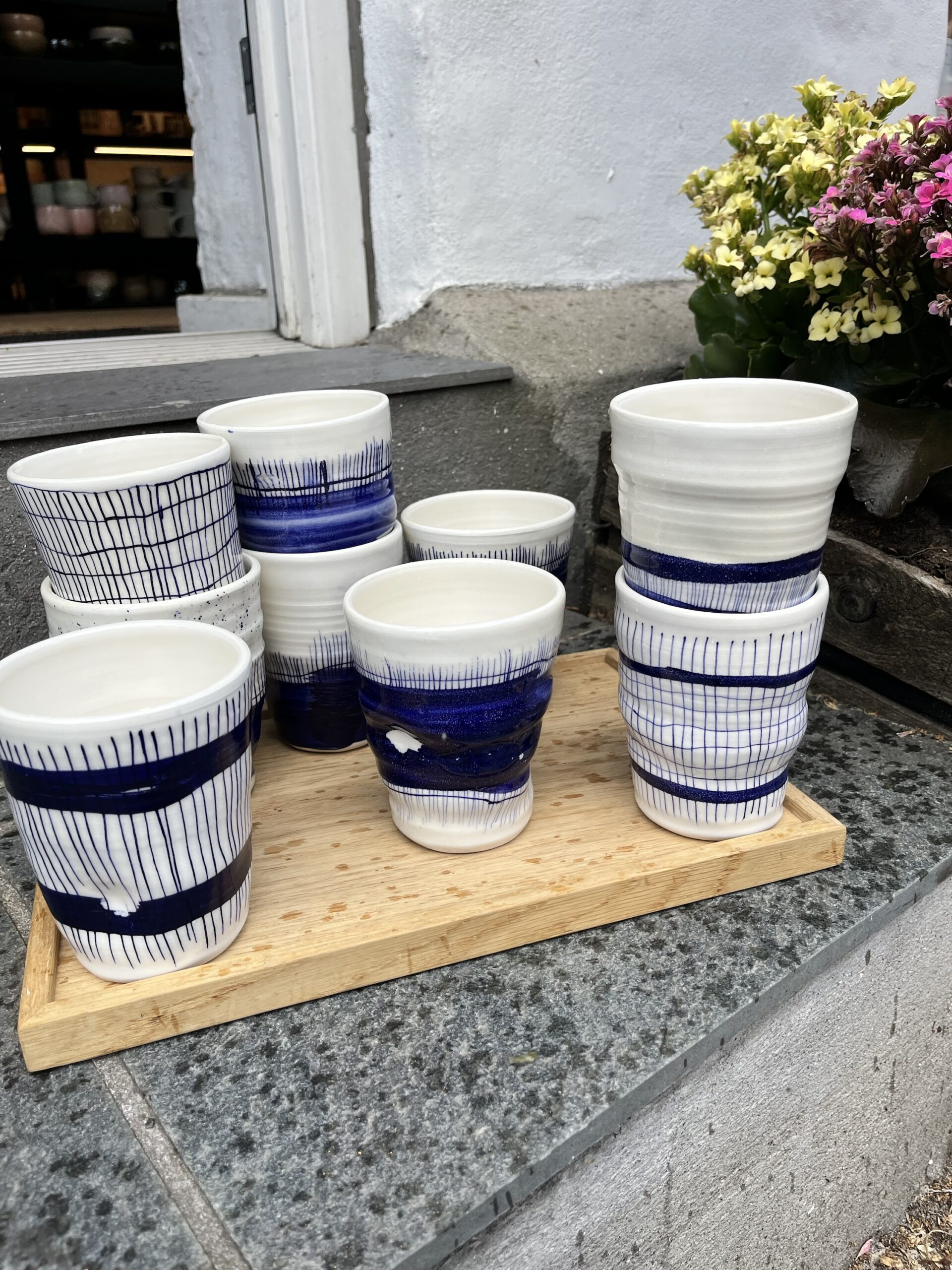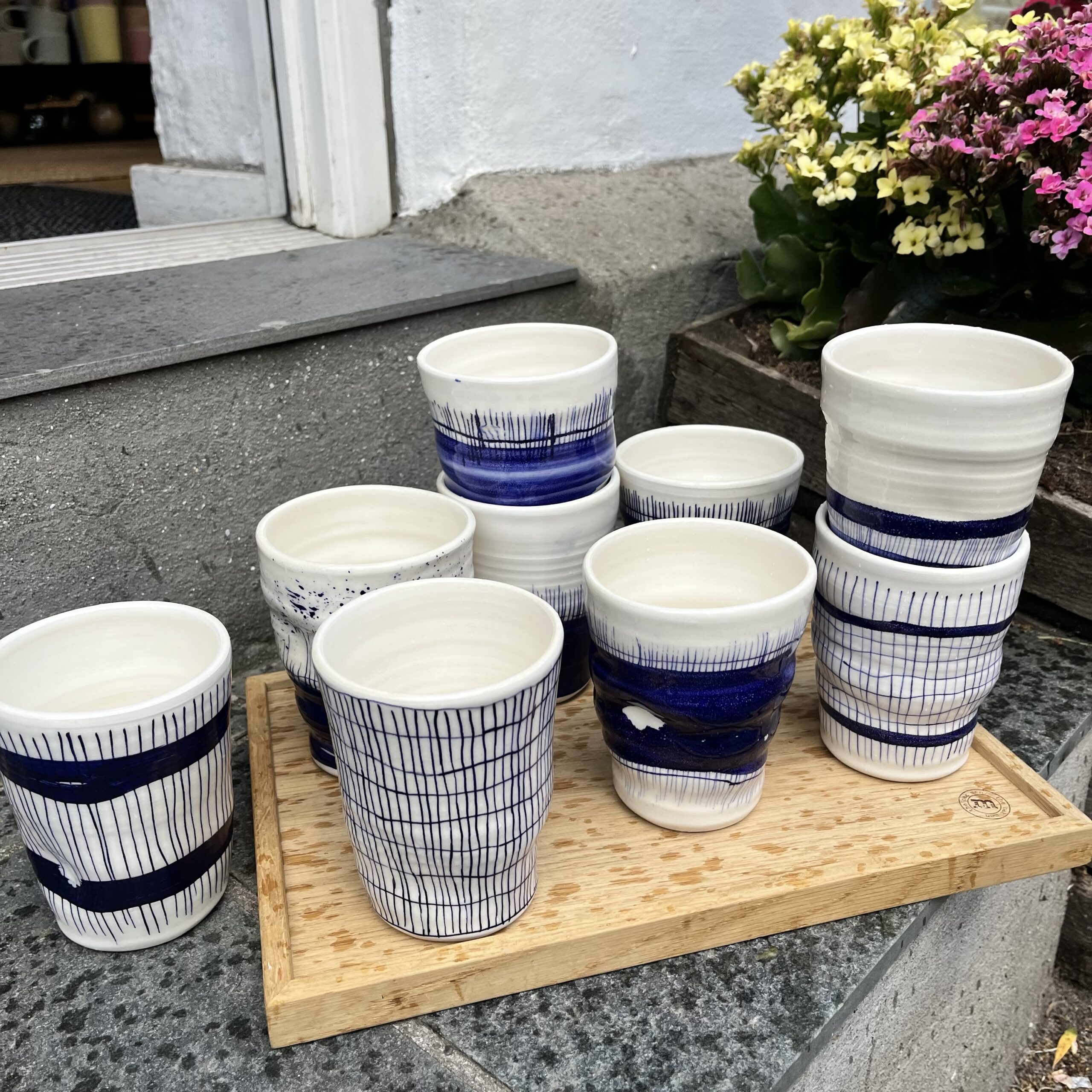 Kopper fra Andersen Keramik med unikke blå streger og detaljer