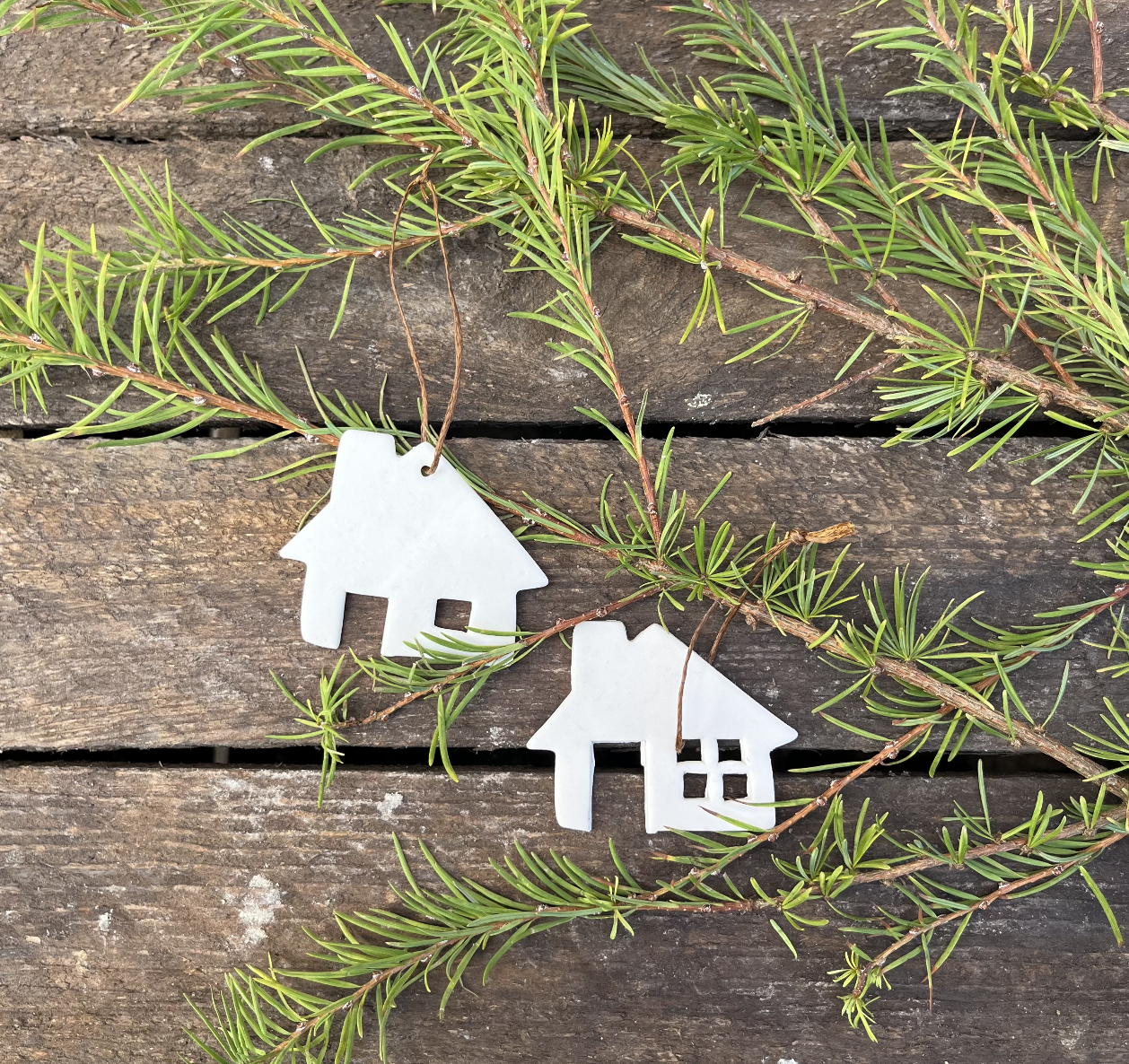 Håndlavet hus julepynt i porcelæn fra Helene Thing