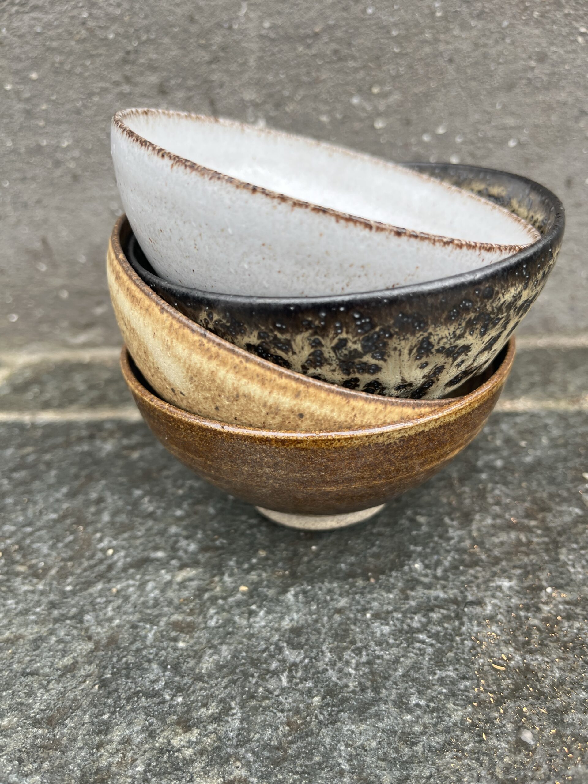 Smukke Lone Simonsen skåle i afdæmpede harmoniske farver. Ca. 10-11 cm i diam og 5-5,5cm høj.