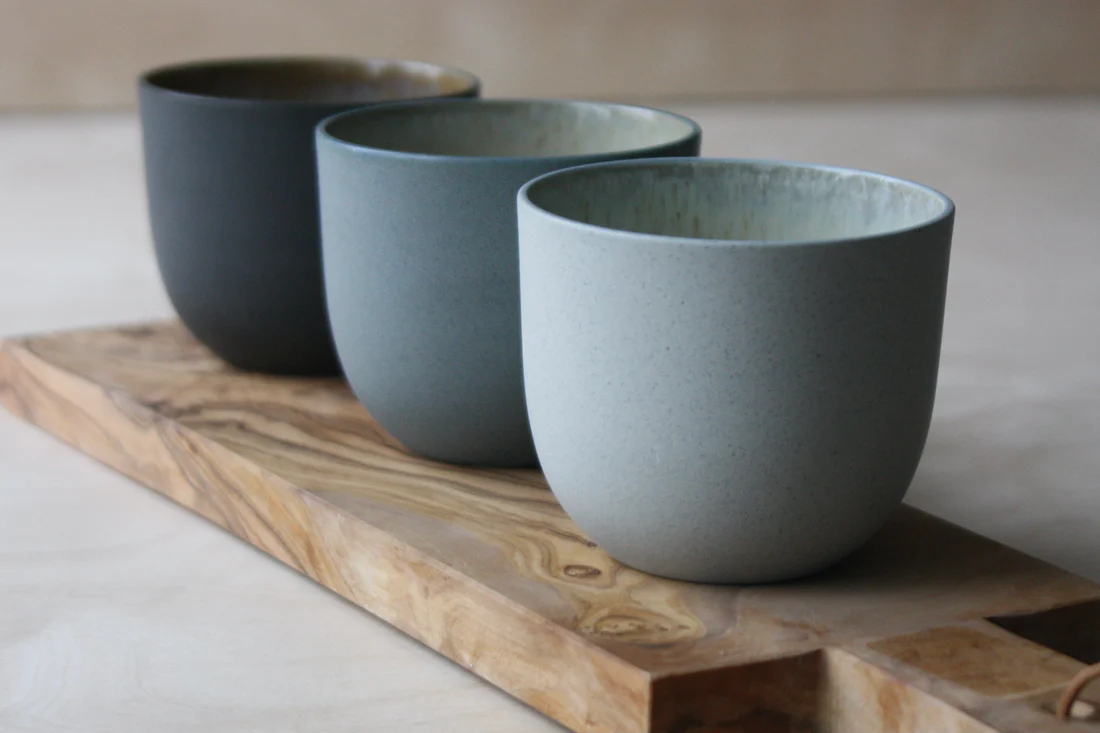 Der er variationer i alle produkter, da de er fremstillet i hånden. Hvert enkelt produkt er støbt, pudset, glaseret, dekoreret og efterfølgende vandslebet i hånden. Produkterne er designet og fremstillet på værkstedet i København og alle dele kan komme i opvaskemaskinen og i microbølgeovnen.