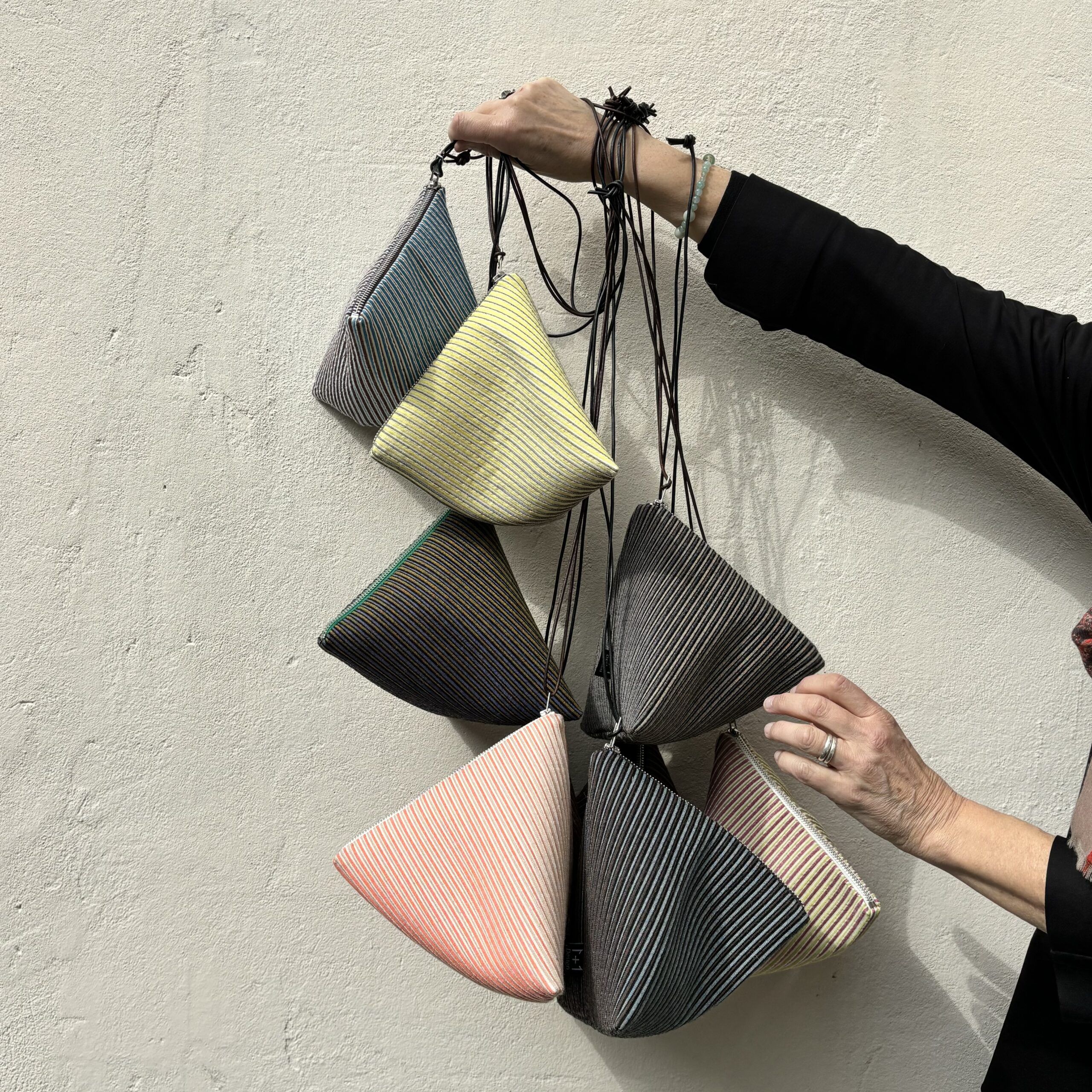 1+1 Design tethraede taske i vævet tekstil chicago, med lynlås og regulerbar rem. Slidstærkt beawernylon foer.