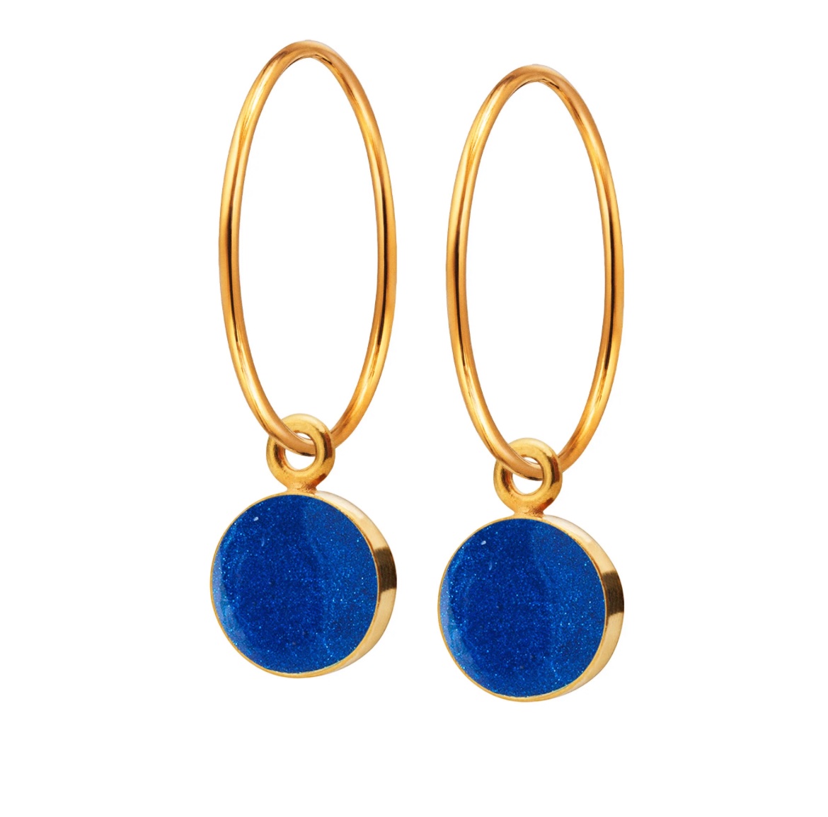 Fine øreringe med SIGN vedhæng med emaljelak i flouriserende Ocean Gold . Stilren, enkel og iøjnefaldende.