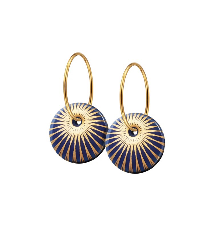 Forgyldt sterling sølv · Creol dia. 15 mm Vedhæng: håndlavet porcelæn · Dia. 14 mm