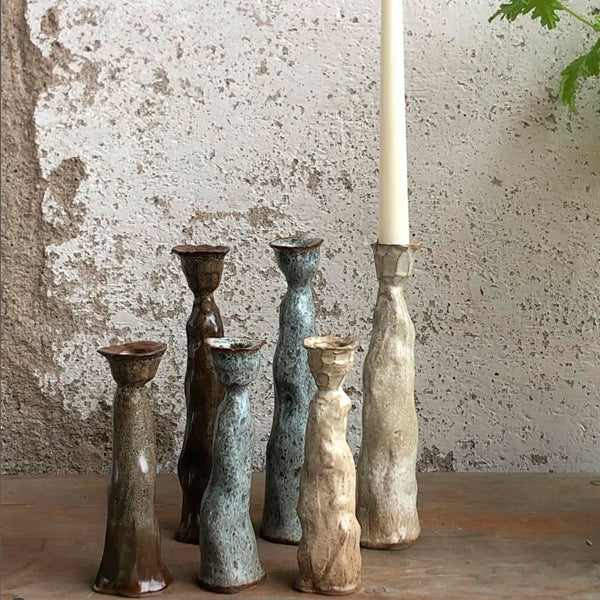 Lysestage fra den danske keramiker Sidsel Holsteen. Lysestagerne er lavet på Sidsels værksted i Lejre. I skabelsen af lysestagerne har Sidsel Holsteen søgt inspiration i silhuetter og i valmuekapsler. Lysestagerne har et organisk udtryk, og hun har gjort en dyd ud af, at lysestagerne skal være forskellige, således at hver enkelt lysestage har sit eget udtryk.
