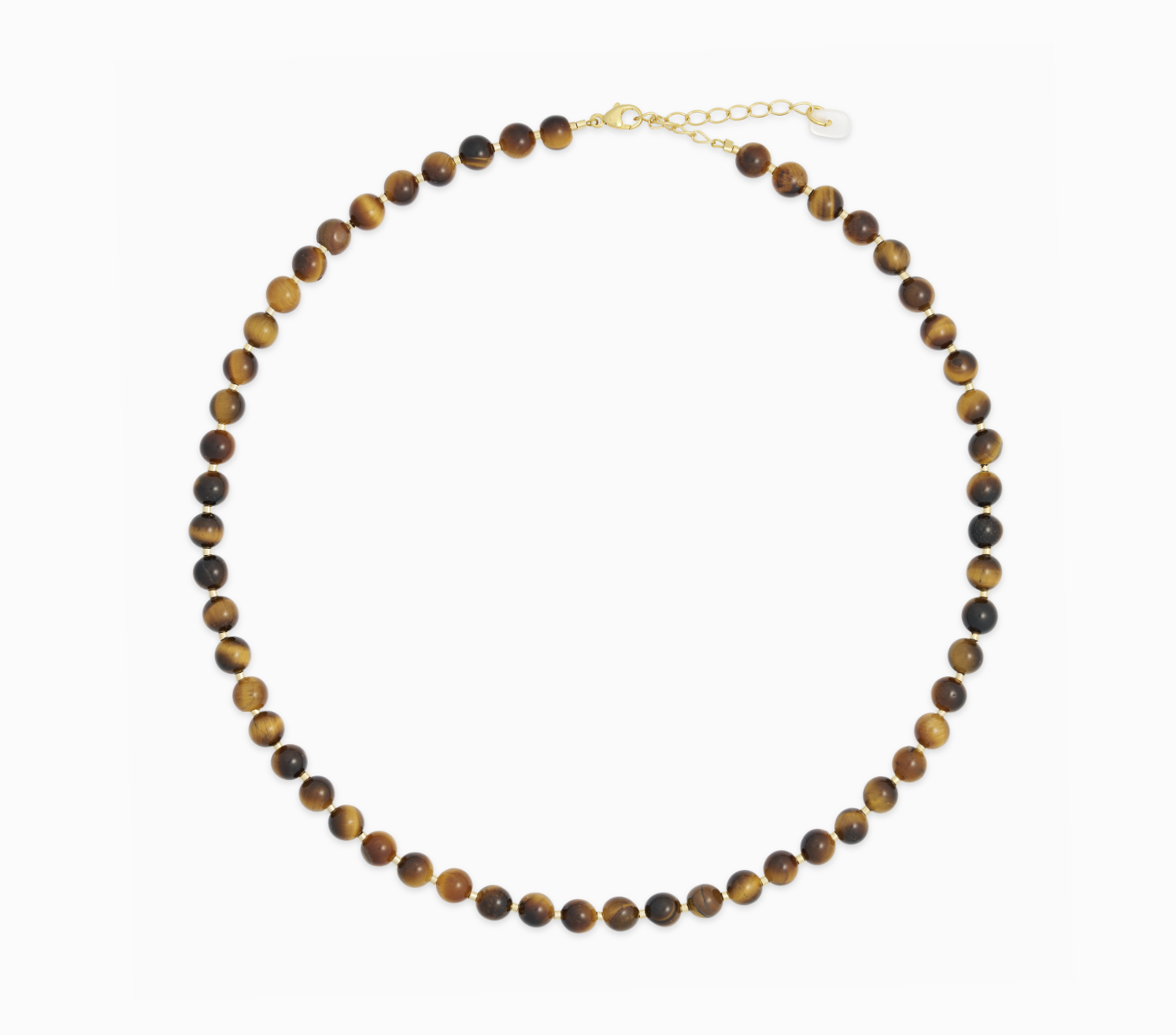 De gyldne og brune toner fra Tiger Eye symboliserer styrke og stabilitet. Lavet med omhu og præcision, er denne halskæde mere end et smykke; den er et symbol på helbredelse og indre ro.