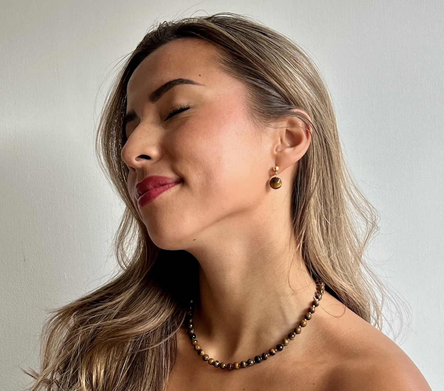 Soi – Tiger Eye med Ferskvandsperler – Krystal halskæde