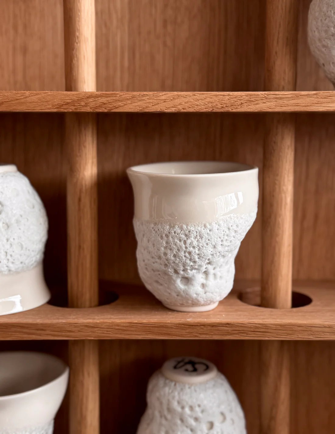 The Wave Song Cup is inspired by the white foam of the sea, thrown onto the beach by the waves. When the wind blows across the sea, air bubbles mix with the water. When sunlight hits the bubbles, the light is reflected, making the foam appear white.