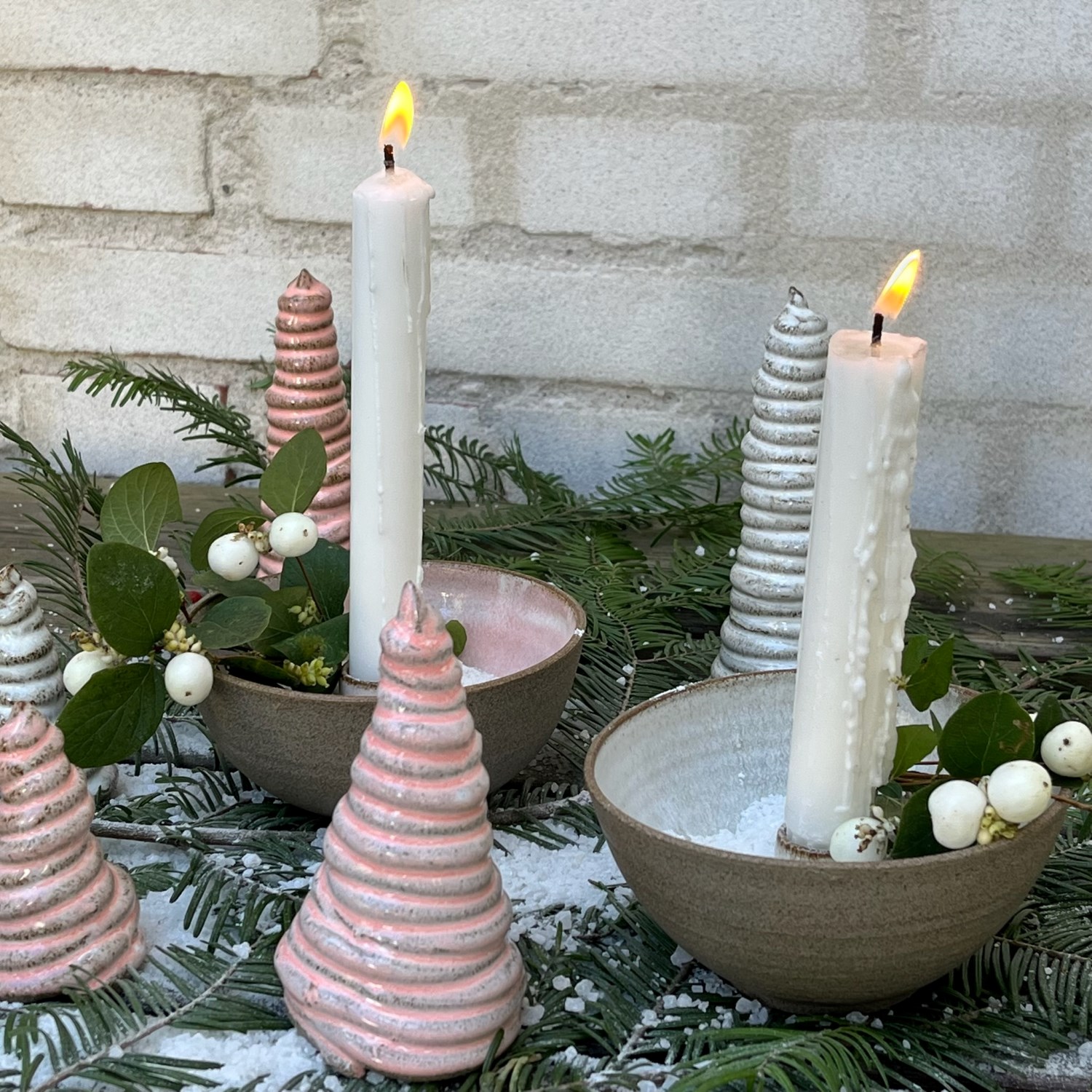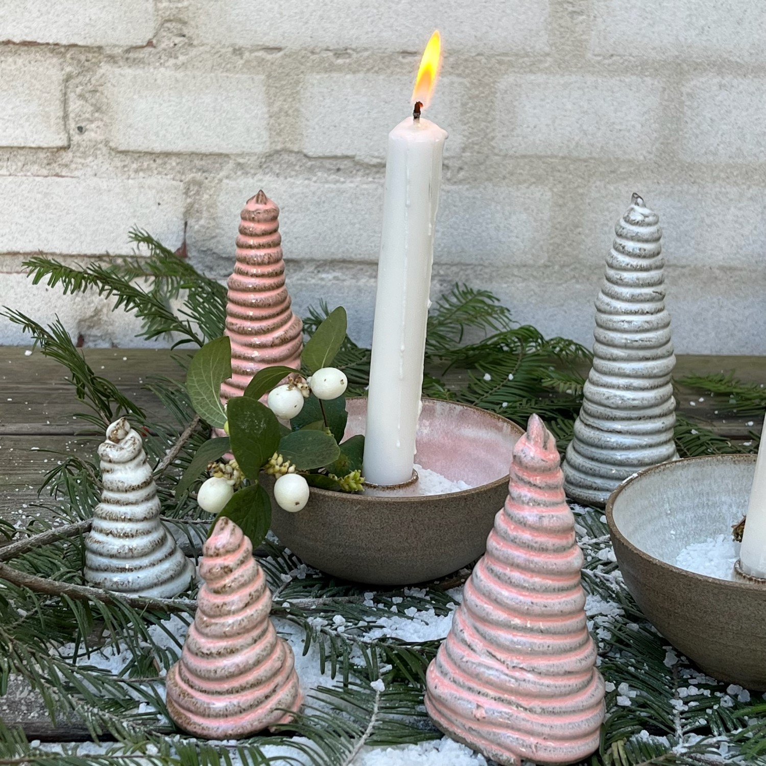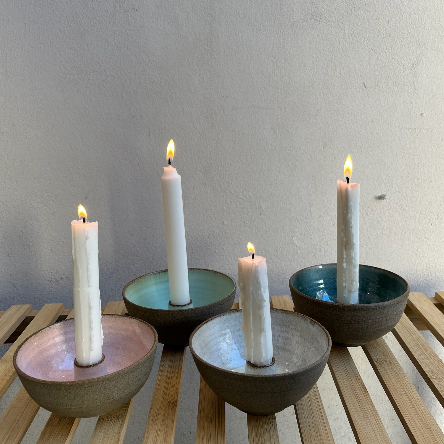 Thilde Graulund – Rå lysestage i stentøj (hvid, rosa, mint og petrol)