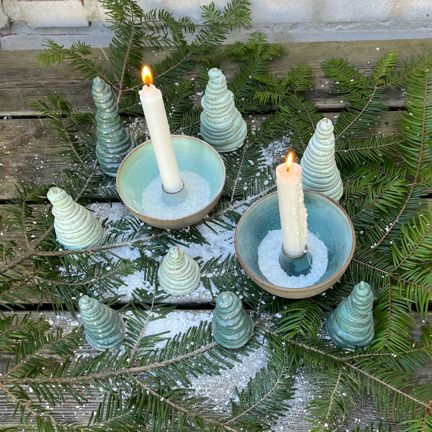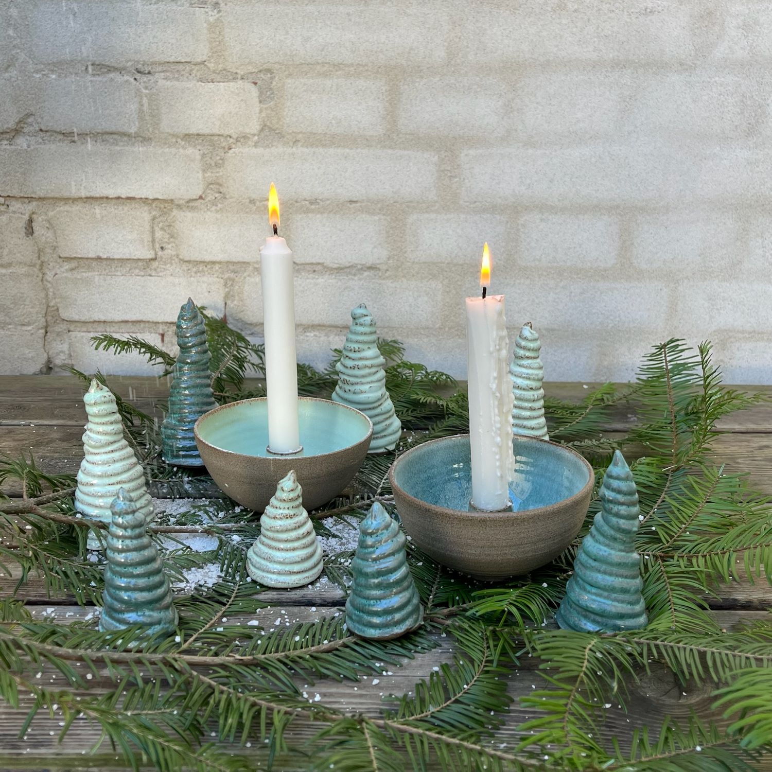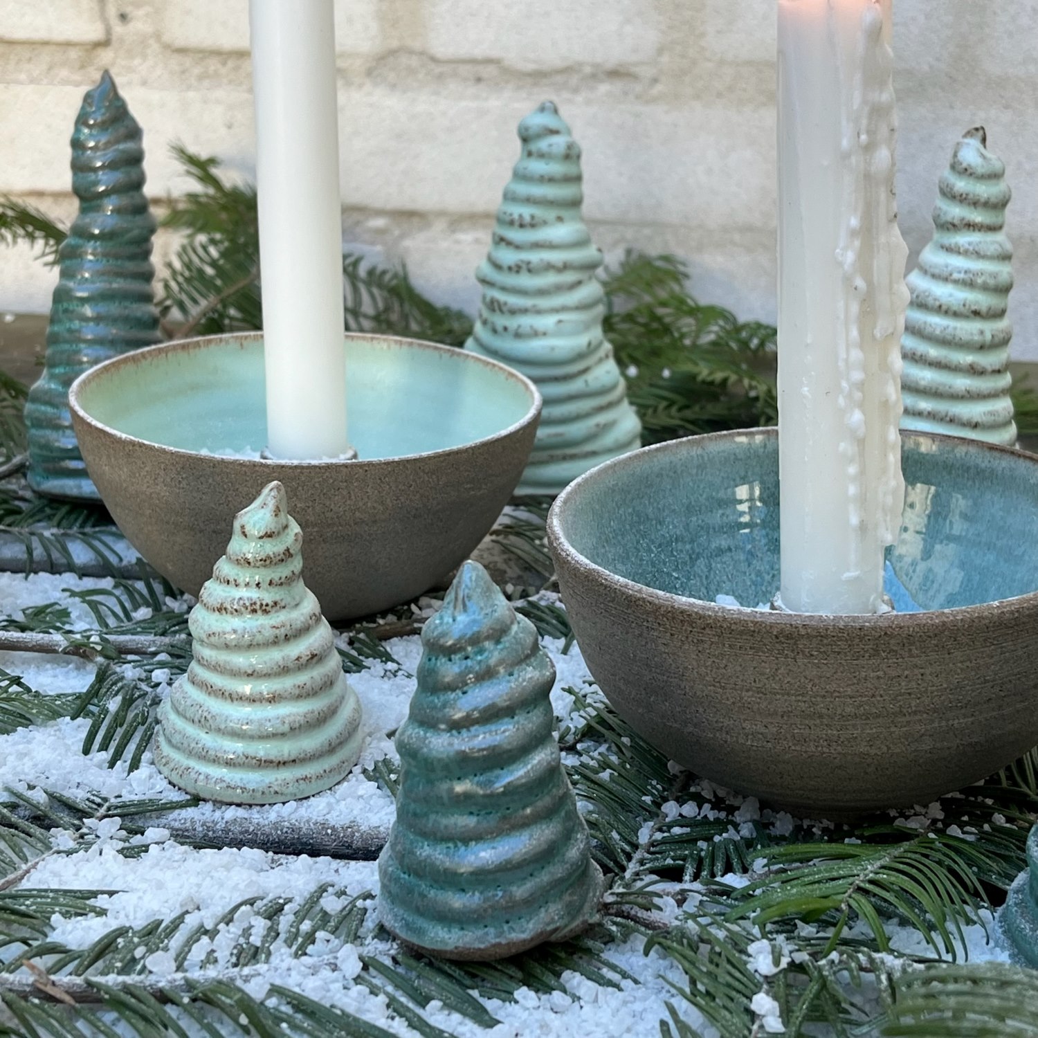 Thilde Graulund – Rå lysestage i stentøj (hvid, rosa, mint og petrol)