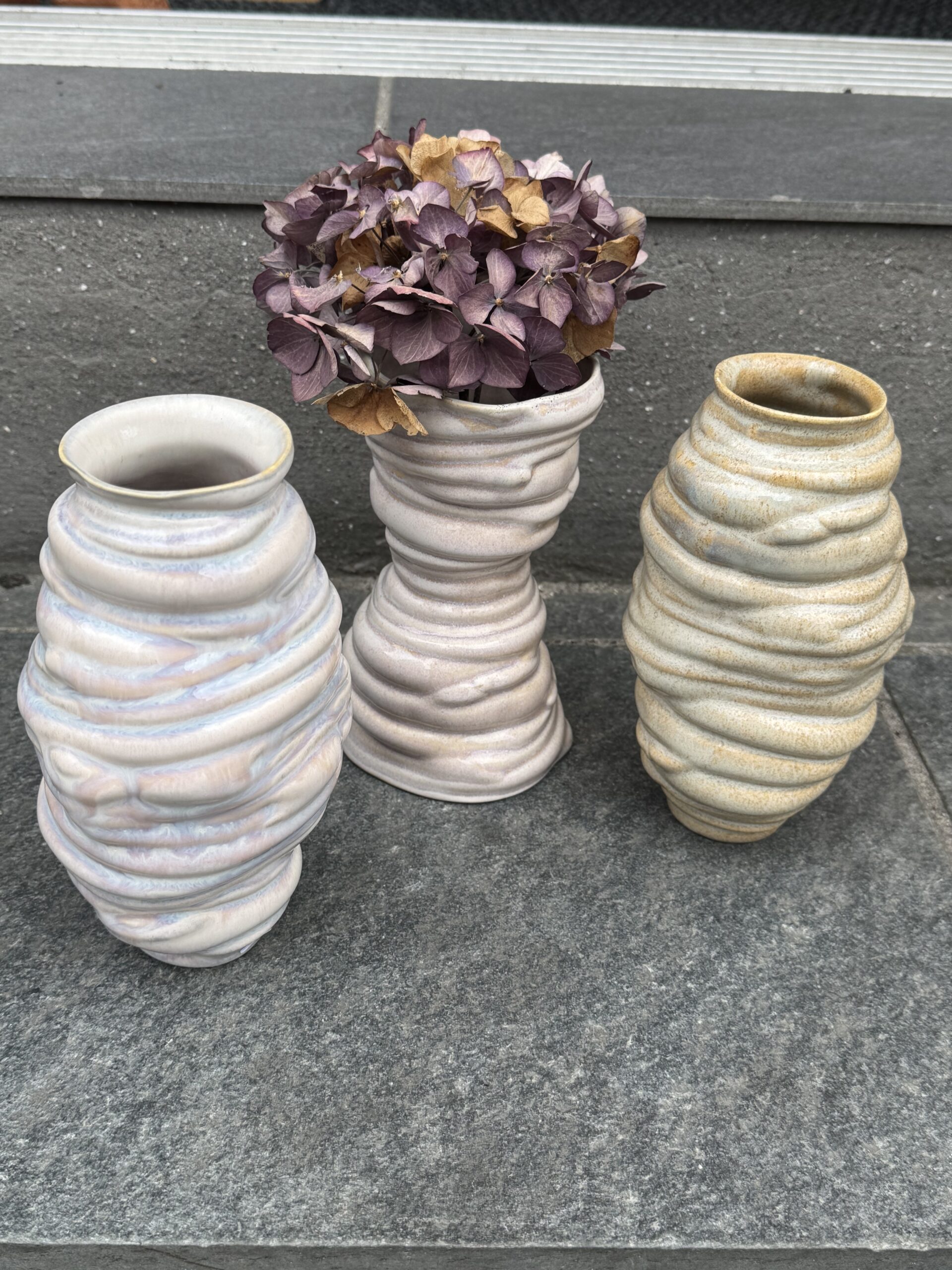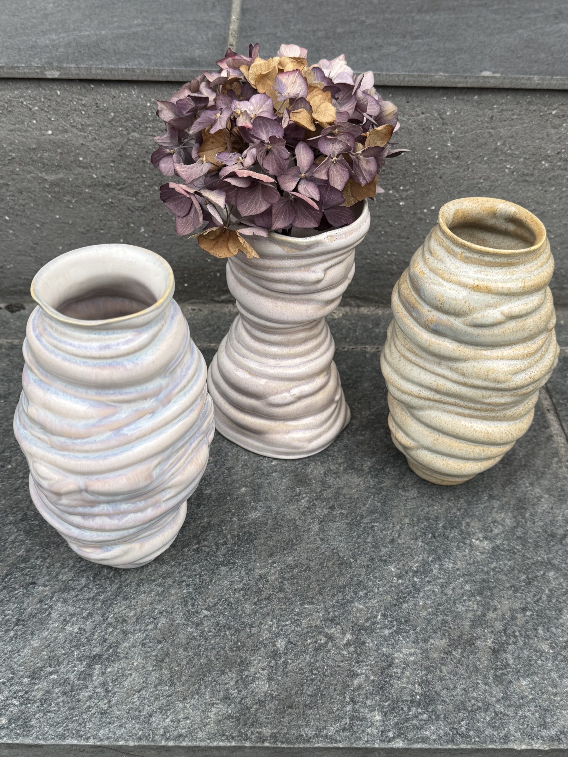 Thora Finnsdottir Vulcano vase i smukke chancerende rosa farver i glasuren.