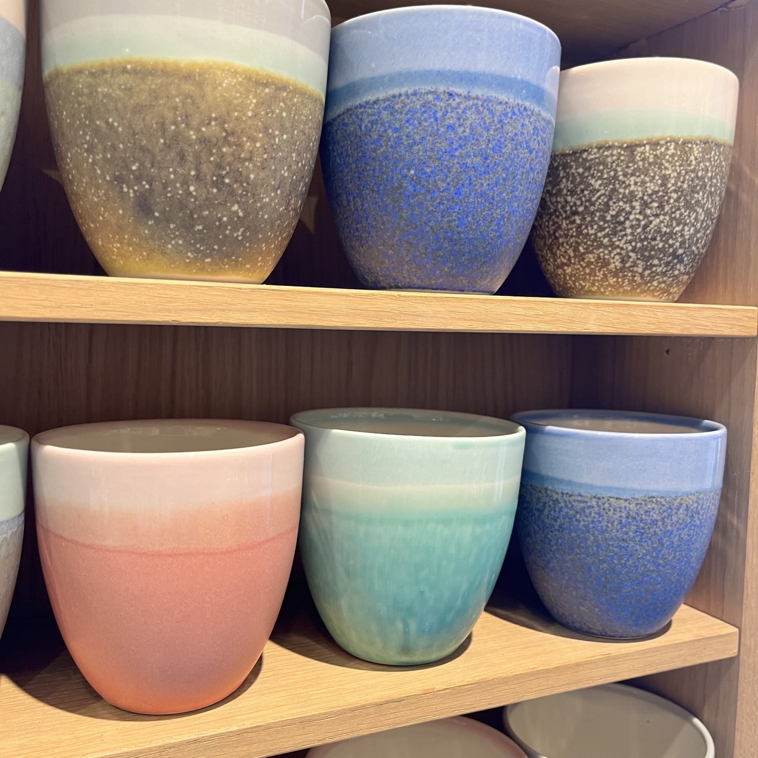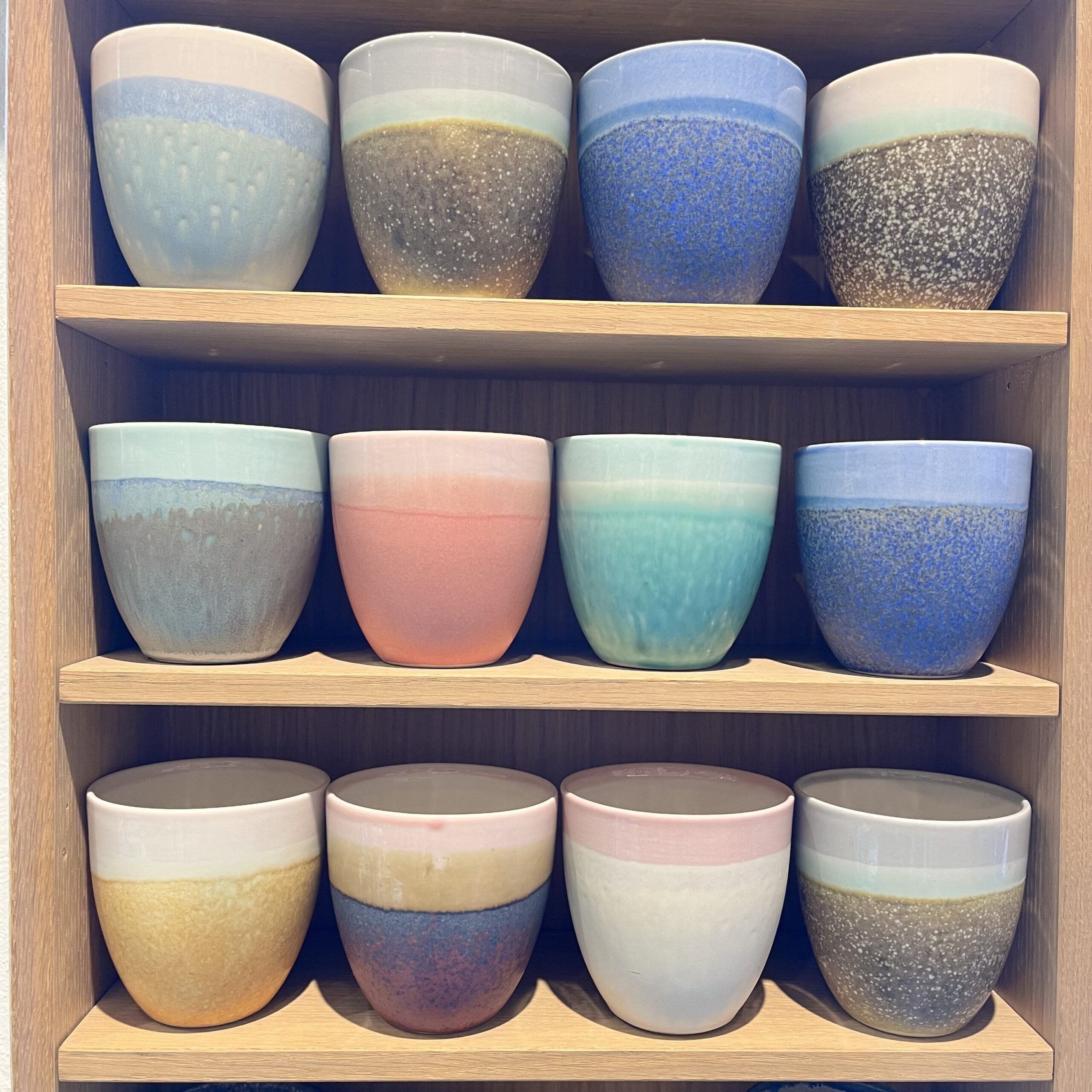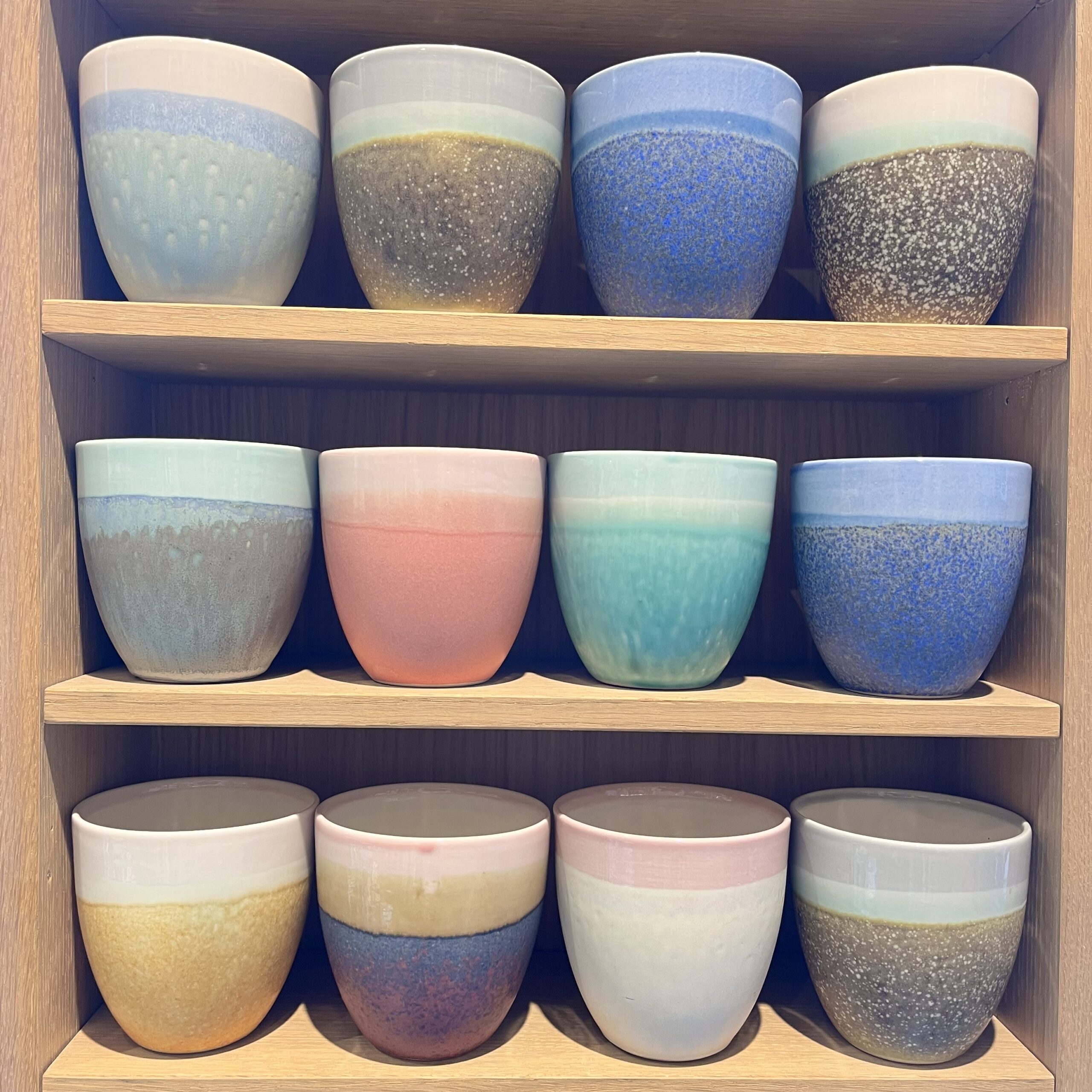 Pastello-produkterne er en linie hvor mødet mellem to glasurer giver en tredje. Her er overflade og taktilitet et bærende element. Den nederste glasur, og dermed den del man holder på, er mat og har struktur, den øverste del er blank, hvoraf man drikker af koppen. Så den er glat og et blødt møde mod læberne.
