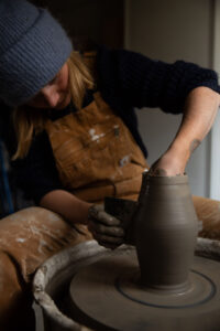 Ved drejeskiven forvandler Mathilde den rå ler til unikke former med et klart og gennemarbejdet, organisk udtryk. Hvert enkelt objekt er nøje udført og fremstillet med fokus på æstetik, kvalitet og holdbarhed.
