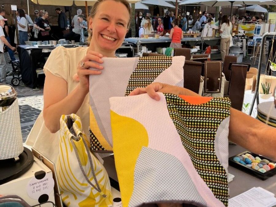 Signe Lybeck af Hihi | sep 8, 2016 | Kaffehætte, Kunsthåndværkere, Tehætte Signe Lybeck laver små tasker, kaffe- og tehætter med håndprintede grafiske mønstre, hvor farverne blander sig.