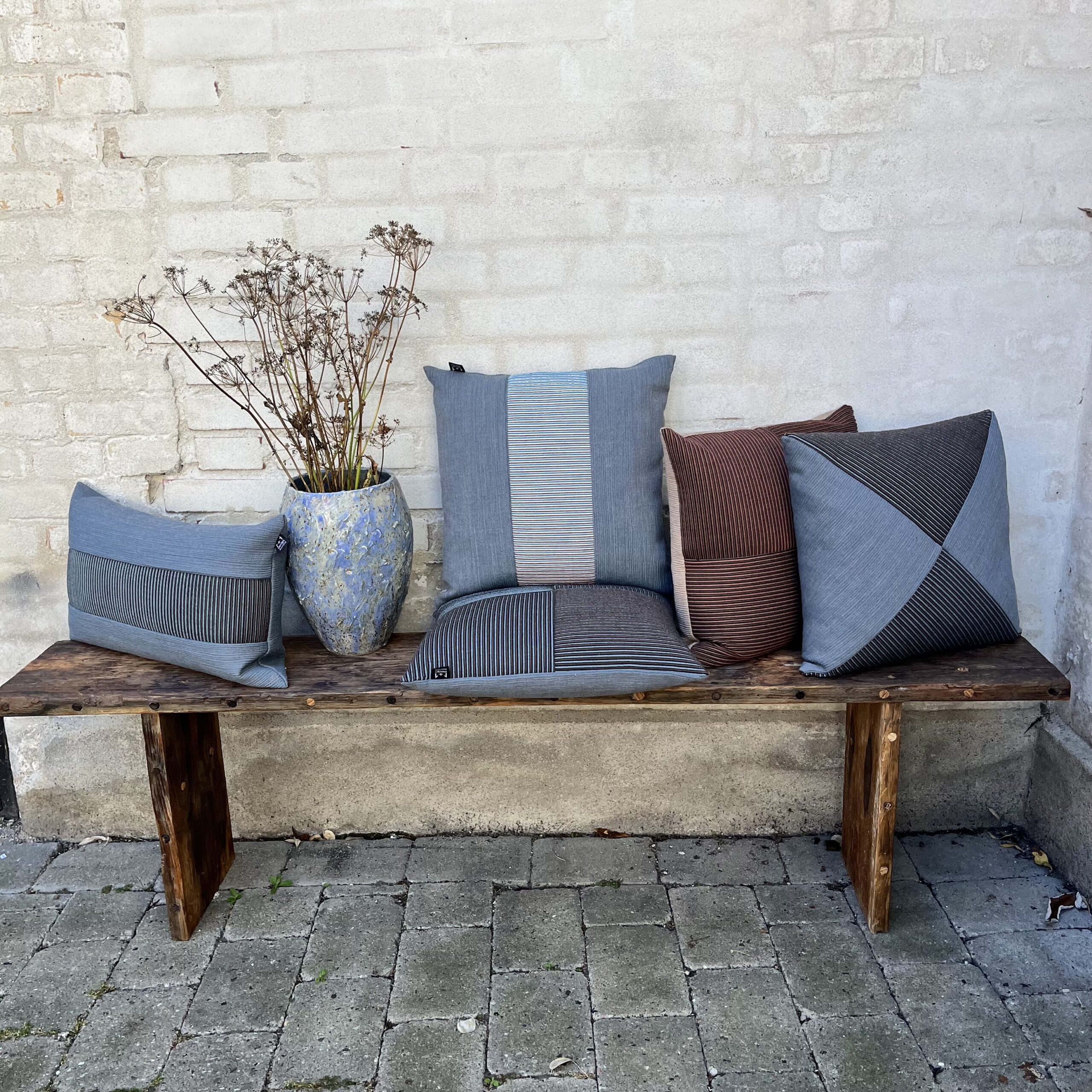 Vævning, farver og materialer mødes i tekstiler, der ændrer karakter med lys, rum og brug. Inspireret af naturens rytmer opstår puder med dybde og bevægelse, hvor overfladerne aldrig er helt ens.